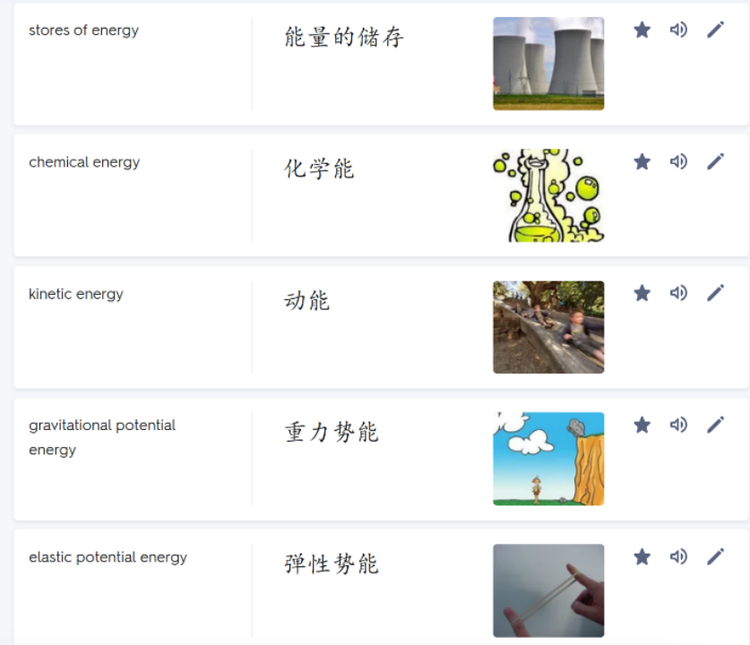 除了纸质的学期单词册,我们也在利用Quizlet建立图例结合的单词练习。学生在课堂刚开始时先熟悉课堂重点单词,课后再完成多种形式的趣味单词考察,以此打牢基础。
