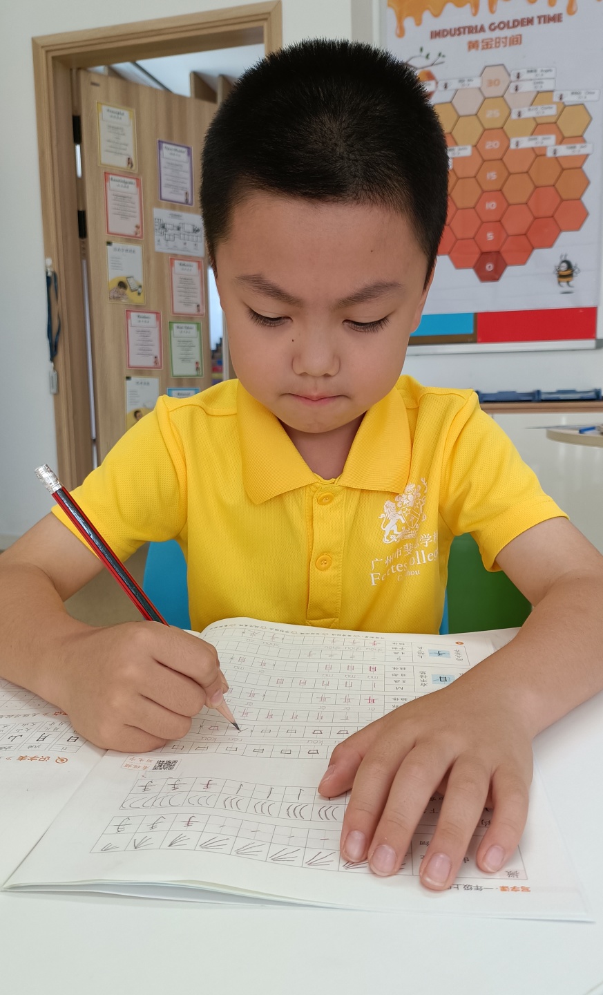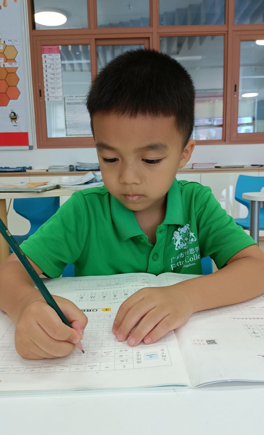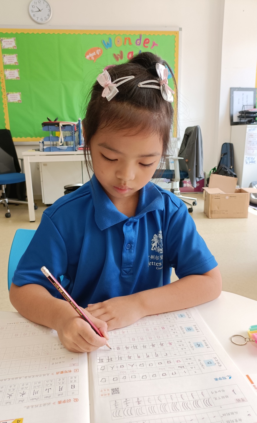 In a twinkling, it's been a month since the first graders started school. Through learning the song "Going to School," they have come to understand that Primary school students should "love learning, love working, and grow up to contribute to the people." By studying "I Love Learning Chinese," they have learned that Chinese class is about "reading, writing, listening to stories, and telling stories."