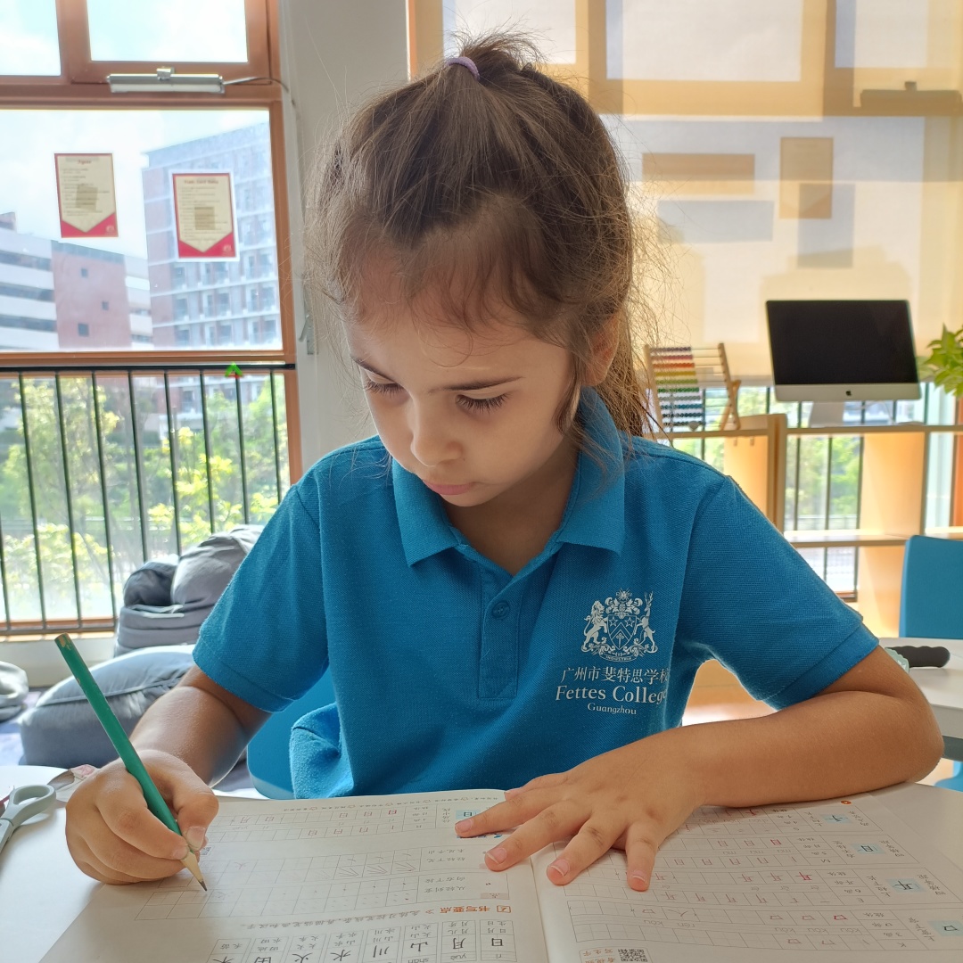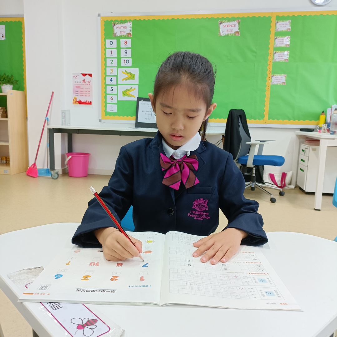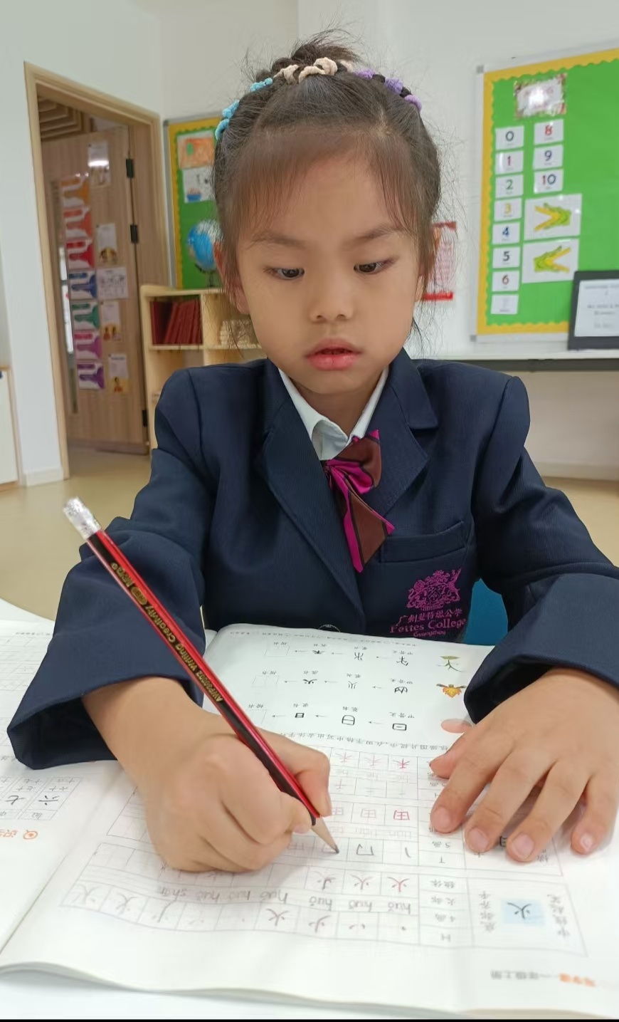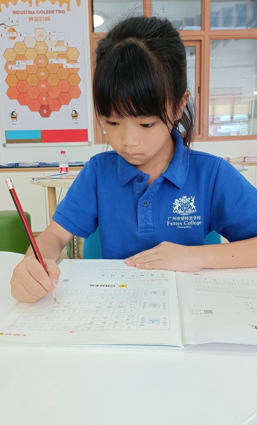 In a twinkling, it's been a month since the first graders started school. Through learning the song "Going to School," they have come to understand that Primary school students should "love learning, love working, and grow up to contribute to the people." By studying "I Love Learning Chinese," they have learned that Chinese class is about "reading, writing, listening to stories, and telling stories."