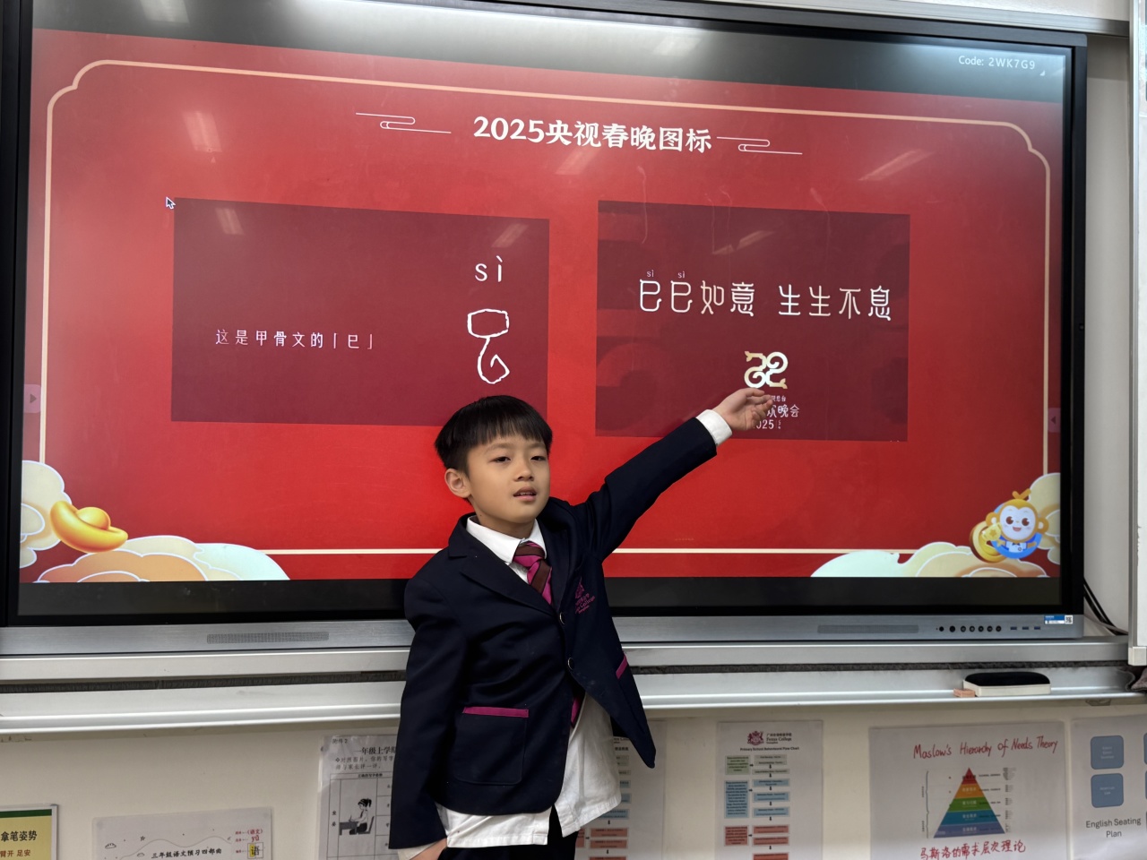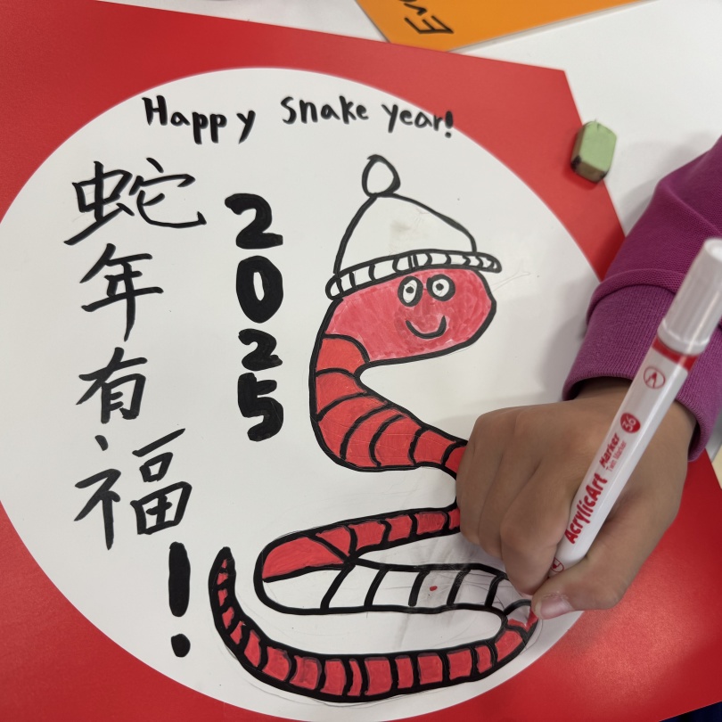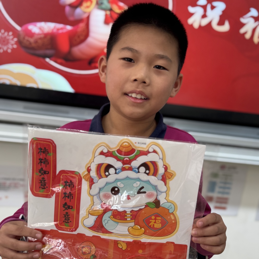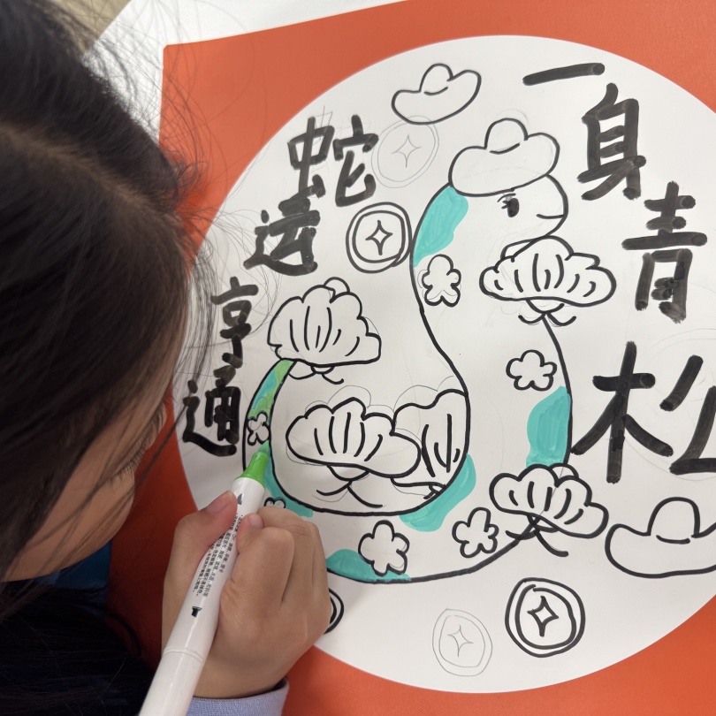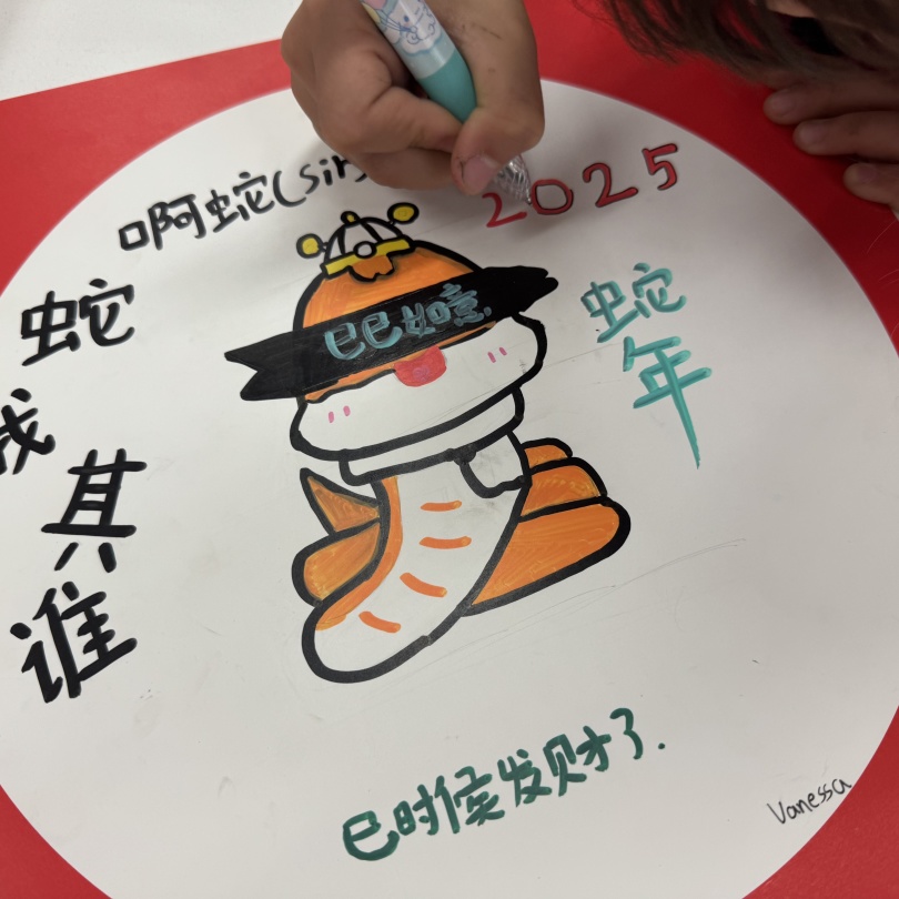 The logo of the 2025 CCTV Spring Festival Gala, immediately caught the children's attention. After observing and discussing, children not only got to know the ancient oracle bone script character "Si", but also unveiled the mystery of the snake - shaped patterns.