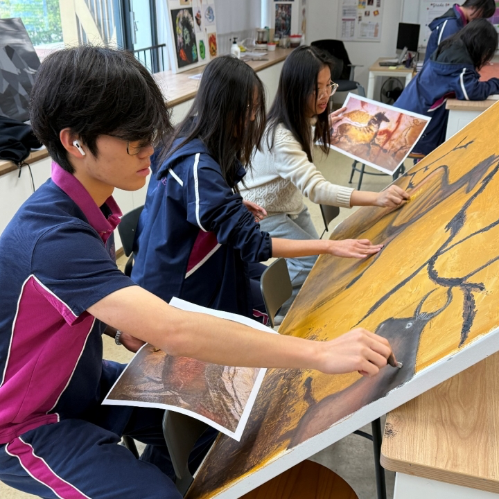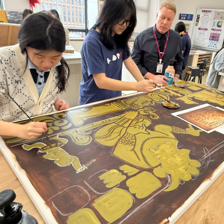 In January, during our English-based Project Based Learning unit, our art students embarked on an inspiring project that delved into the rich heritage of ancient painting styles drawing influences from diverse cultures including Mayan, Egyptian, South African, and Warli art forms. Each student researched the historical context and significance of these artistic traditions allowing them to appreciate the narratives woven into the fabric of each style. The Mayan art, with its intricate glyphs and vibrant depictions of mythology, served as a source of inspiration for storytelling through imagery. Meanwhile, the grandeur of Egyptian art, marked by its symbolic representation and use of hieroglyphics, encouraged students to explore themes of life, death, and the divine. South African rock art, characterized by its powerful depictions of wildlife and human activity, inspired students to connect their work with nature and ancestral heritage. Lastly, the simplistic yet profound lines of Warli art prompted a focus on community and daily life. Through the combination of traditional techniques and modern interpretations, the students created their own unique pieces that not only paid homage to these ancient cultures but also sparked conversations about the relevance of such art in today’s world, blending the past with contemporary artistic expression. The project culminated in a vibrant exhibition that celebrated the enduring power of storytelling through art.