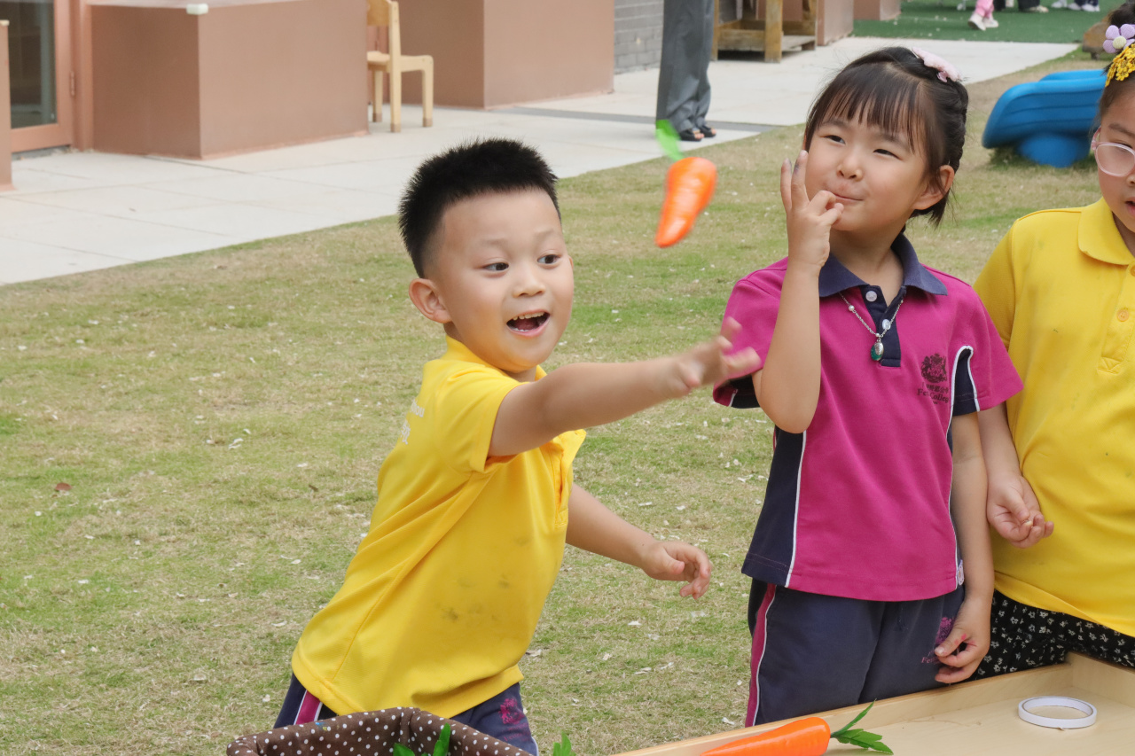 In the game "Carrot Tossing Fun", children transformed into "little pitchers", aiming accurately at the big mouths of bunnies and tossing the carrots in their hands. As the carrots hit the target, cheers and laughter filled the air.