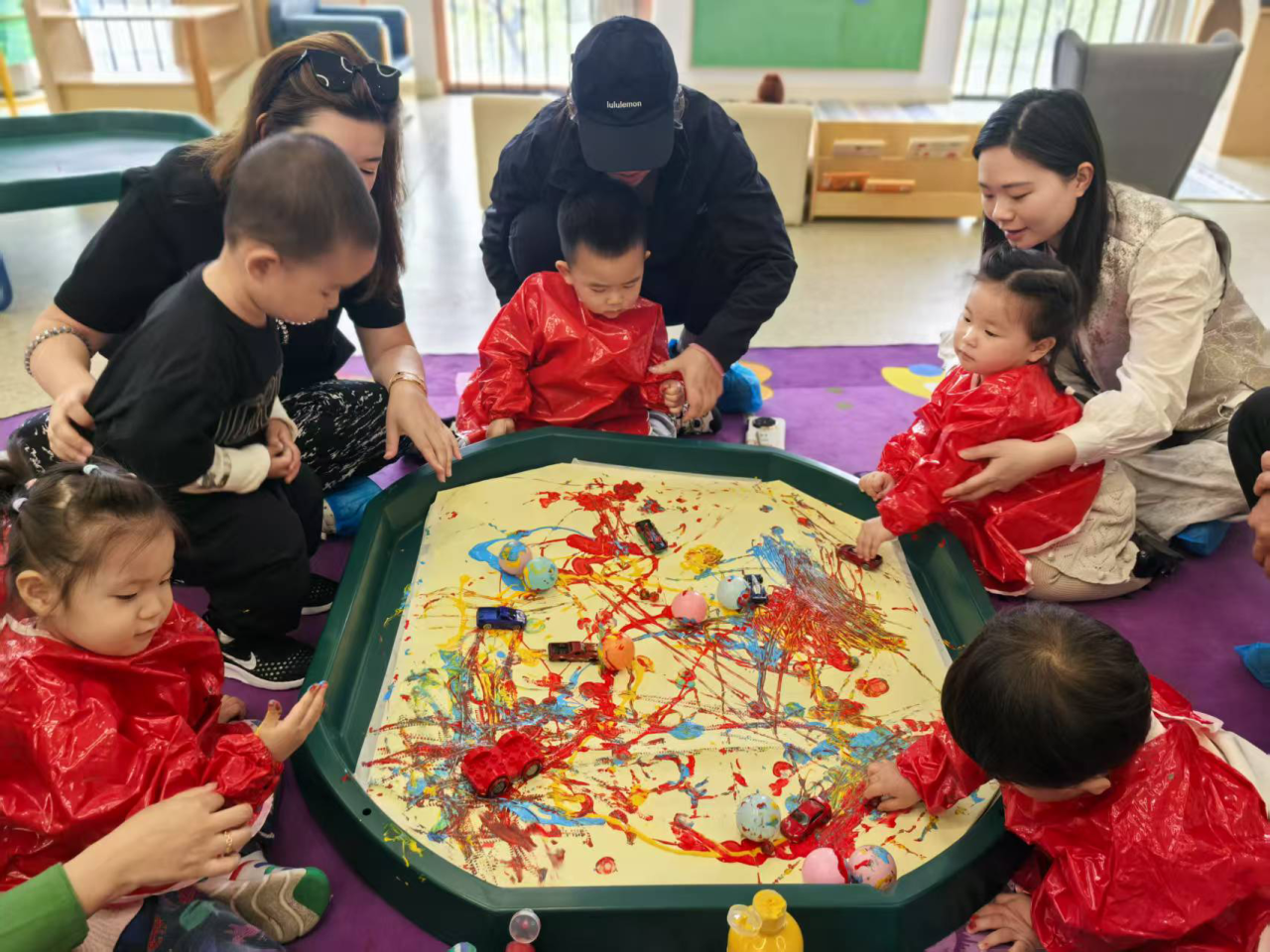 In the EY Mummy and Me classroom, every interaction leaves footprints of growth. When parents and children pick up brushes together, watching paint bloom with imagination on canvases — during collaborative art sessions, small hands and grown-up hands work in harmony. Molding playdough, crafting handmade treasures, and playing with colours allow creativity to blossom through teamwork, with every artwork carrying unique parent-child memories.