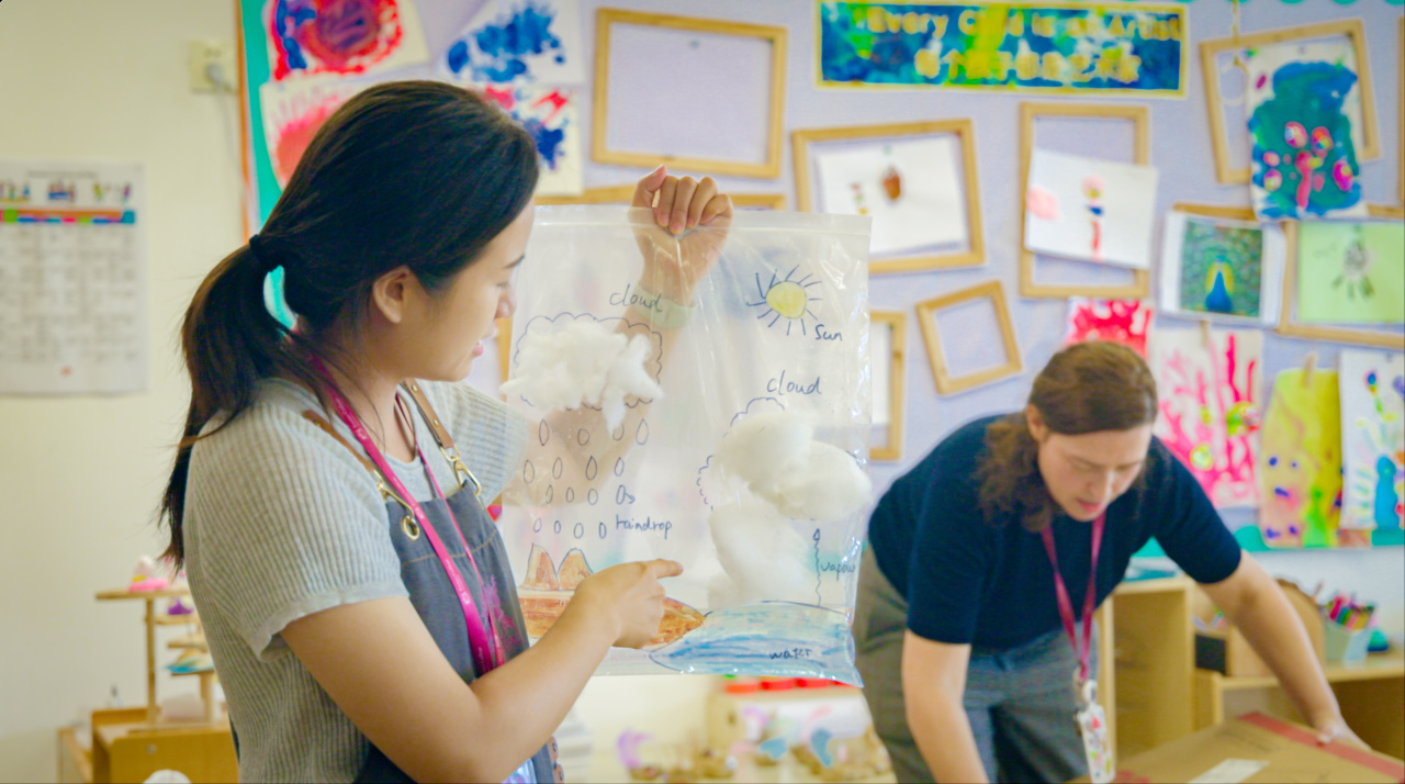 Their curiosity about rain and how it comes about led to some creative hypotheses—one of our favourites being, “The clouds need to pee, but can’t find a bathroom!” Inspired by these imaginative ideas, we launched into hands-on STEAM explorations of the water cycle. We observed how water spilled outside disappeared in the sun, then recreated the process indoors by boiling water so the children could watch vapour rise and condense, just like clouds forming and raining.