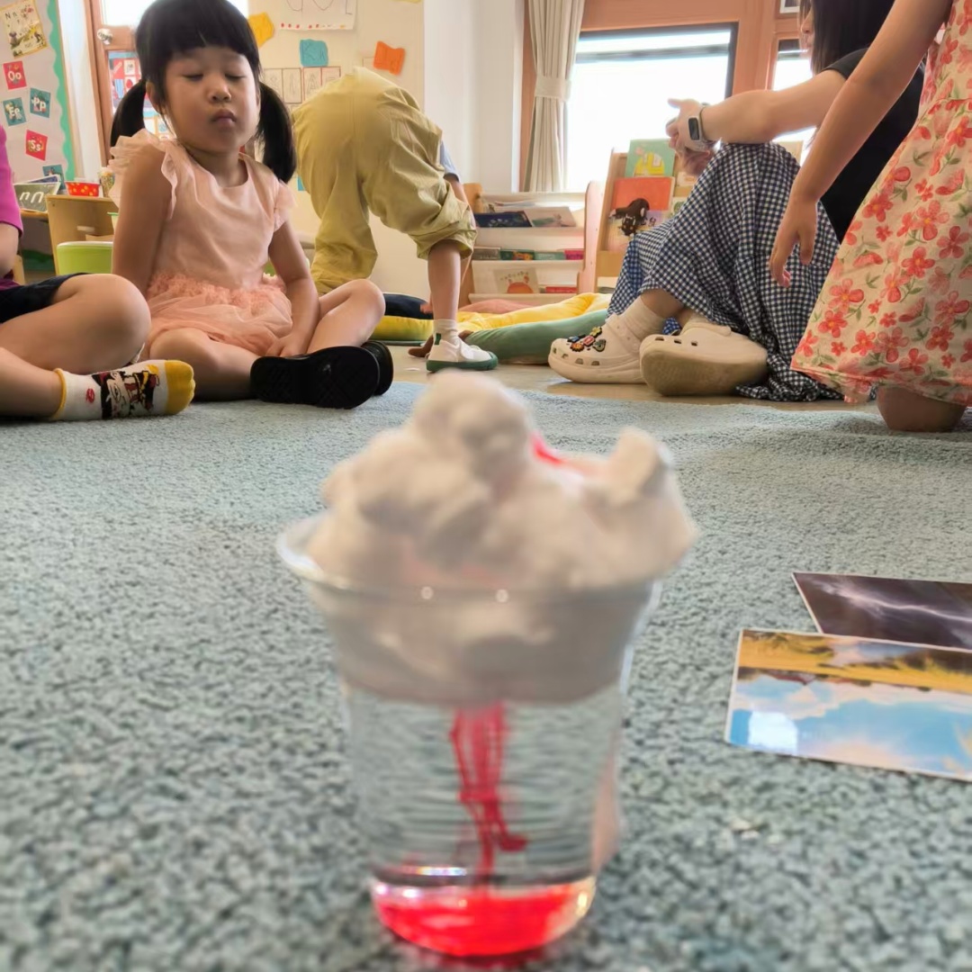 Our “cloud in a jar” experiment was another highlight, allowing the children to see how temperature differences move clouds and create rain.