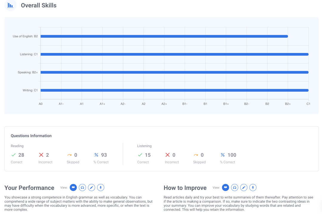 To maximise learning outcomes and fully respect individual student differences, our school continuously refines its baseline tiering mechanism. At the beginning of the new academic year, grounded in the Common European Framework of Reference for Languages (CEFR), the more precise EduSynch system is employed to accurately assess students' English abilities across four dimensions—listening, speaking, reading, and writing—and place them into differentiated instruction classes accordingly. Additionally, students who enter at the CEFR A1 level receive extra support through four weekly sessions of "Additional English" courses. Beyond this, the school relies on five annual full-length mock examinations and four writing sample collections to conduct multidimensional dynamic monitoring of each student’s progress.