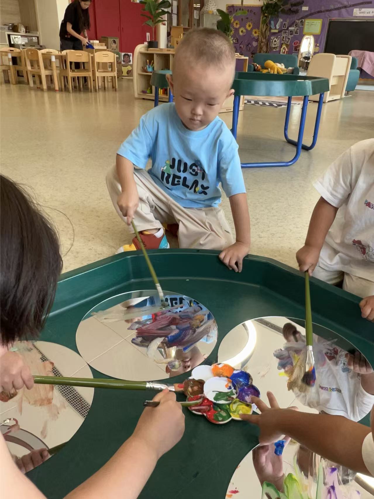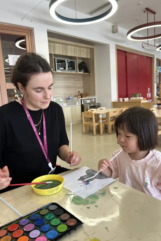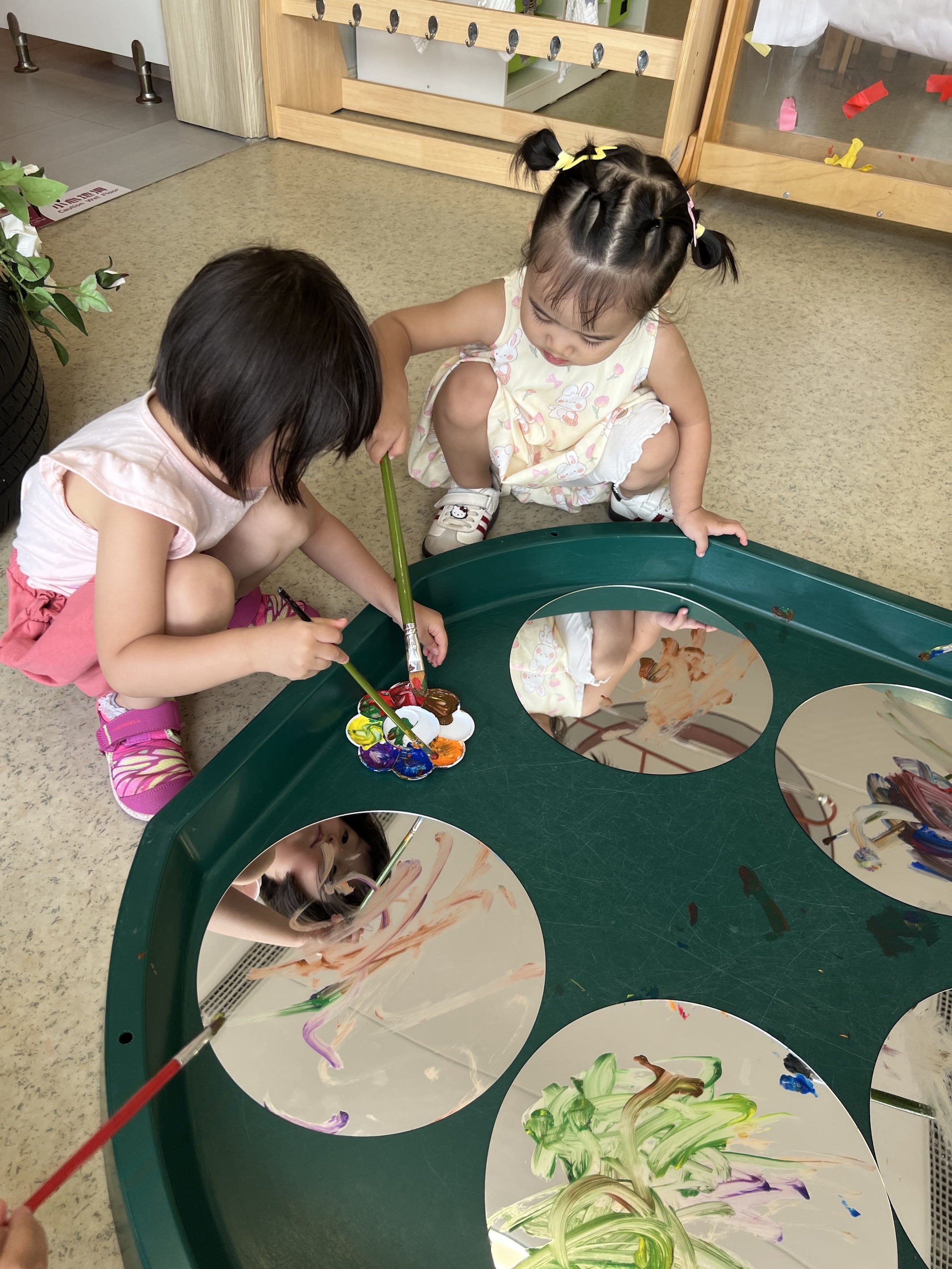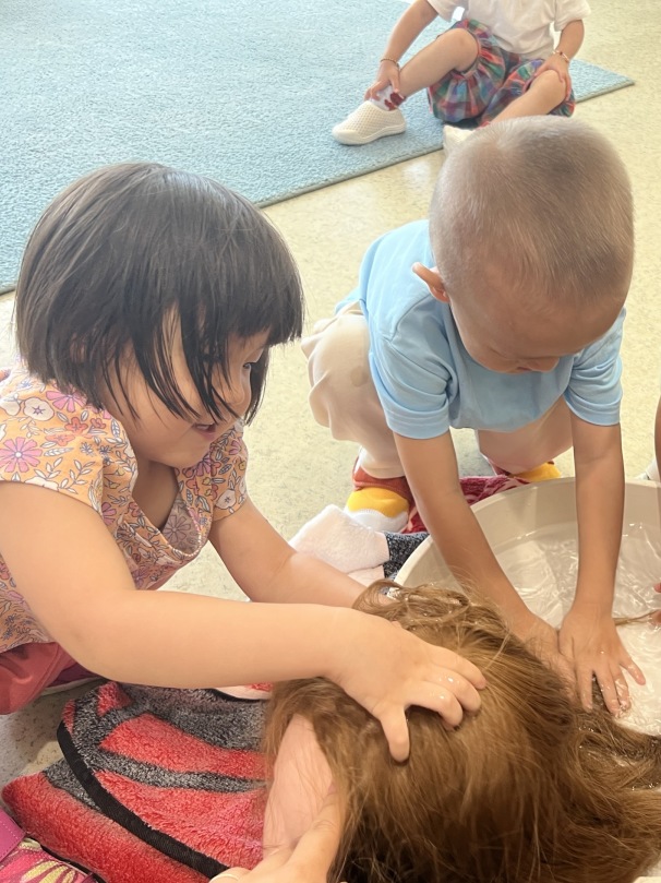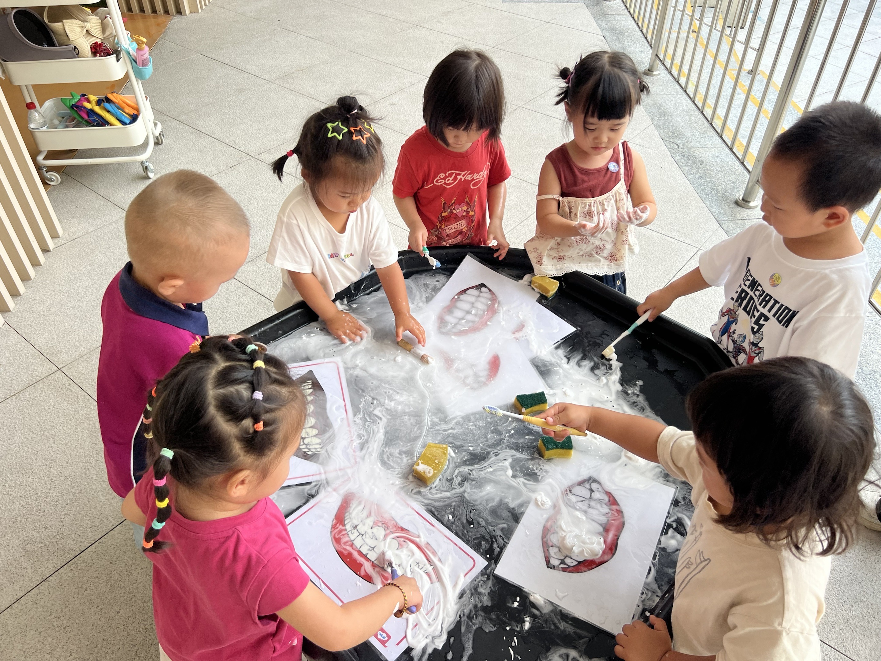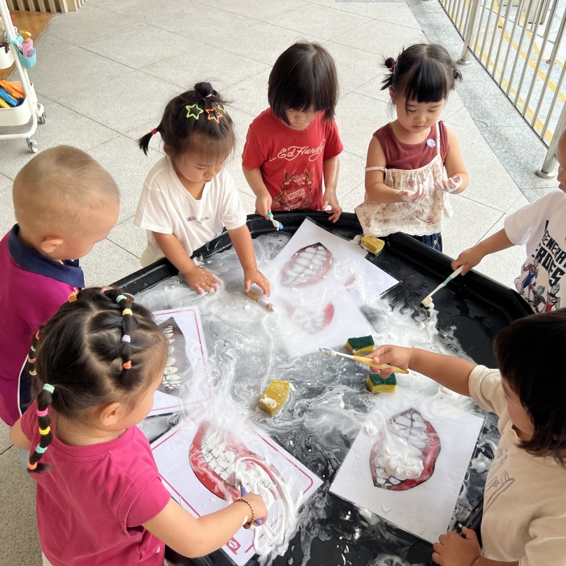 A messy play tooth brushing activity and water-blow art further enriched the children’s learning through sensory creativity.
