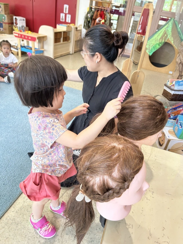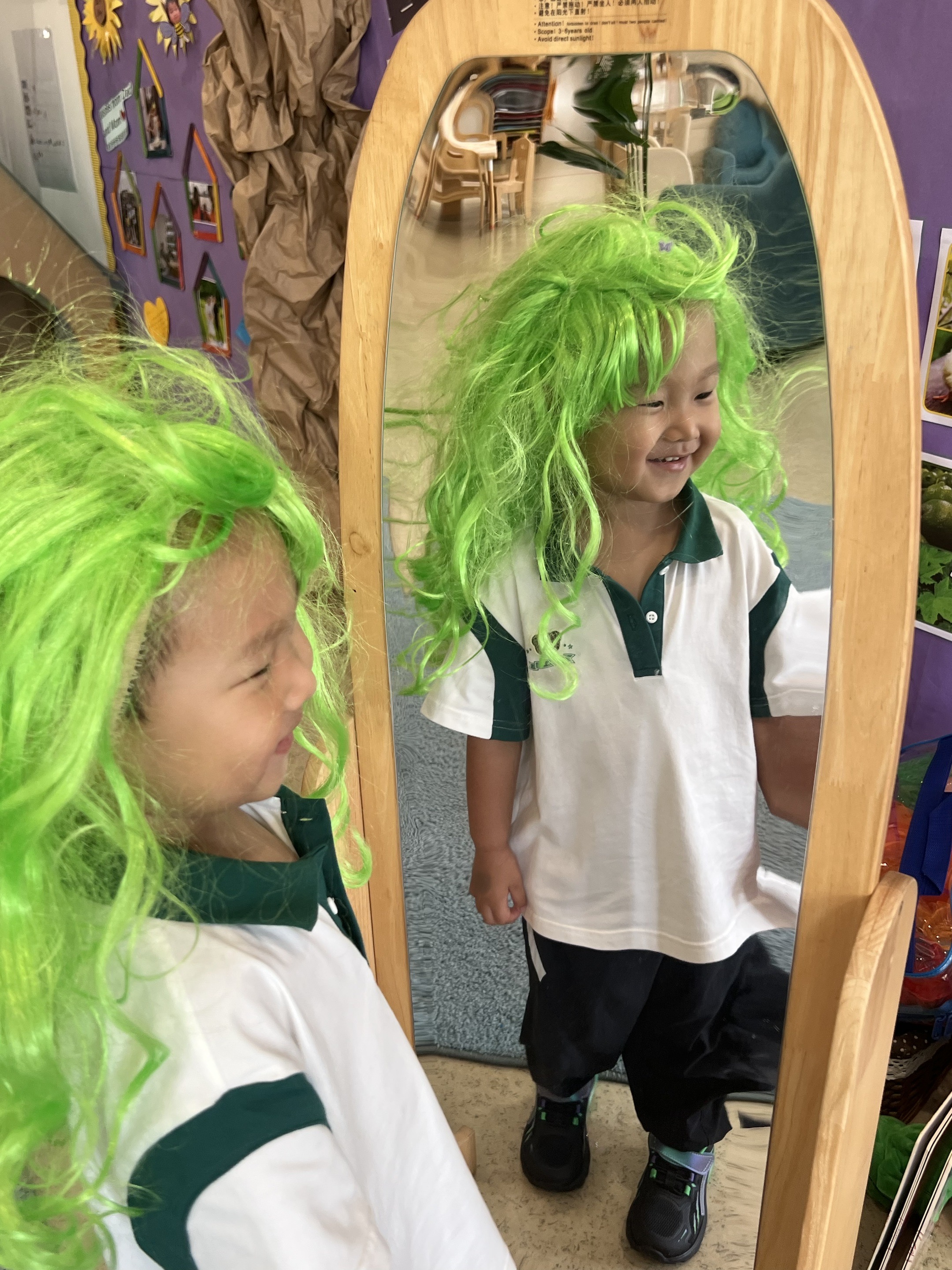Exploring hair through styling, wigs, and pasta-art sparked creativity, while, through sensory play, we also practised self-care habits.