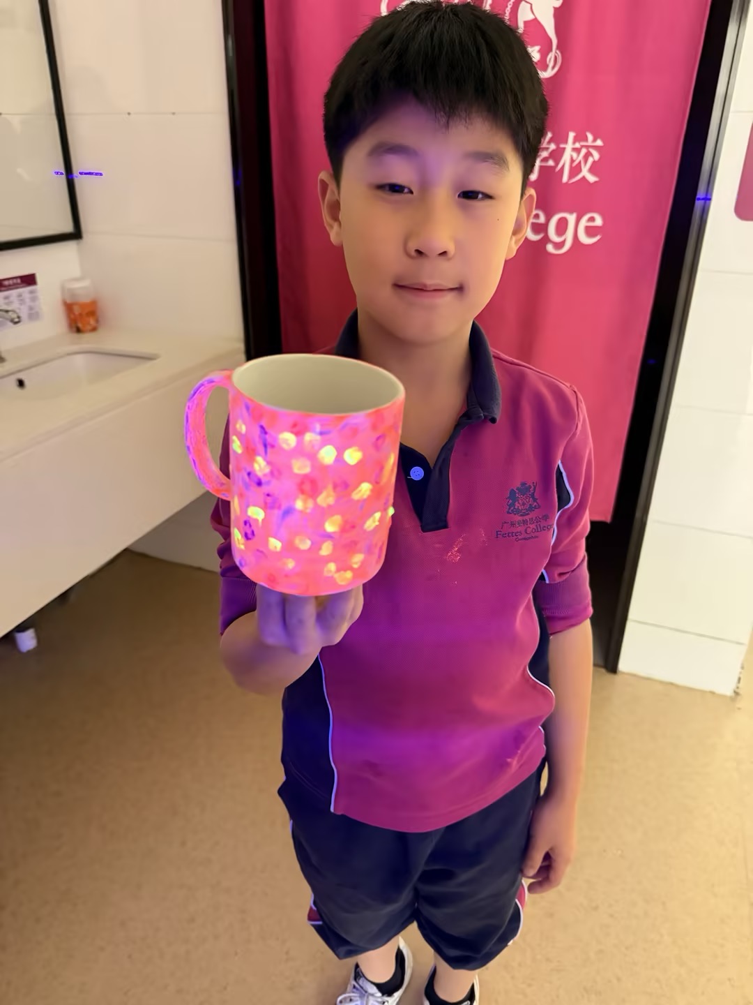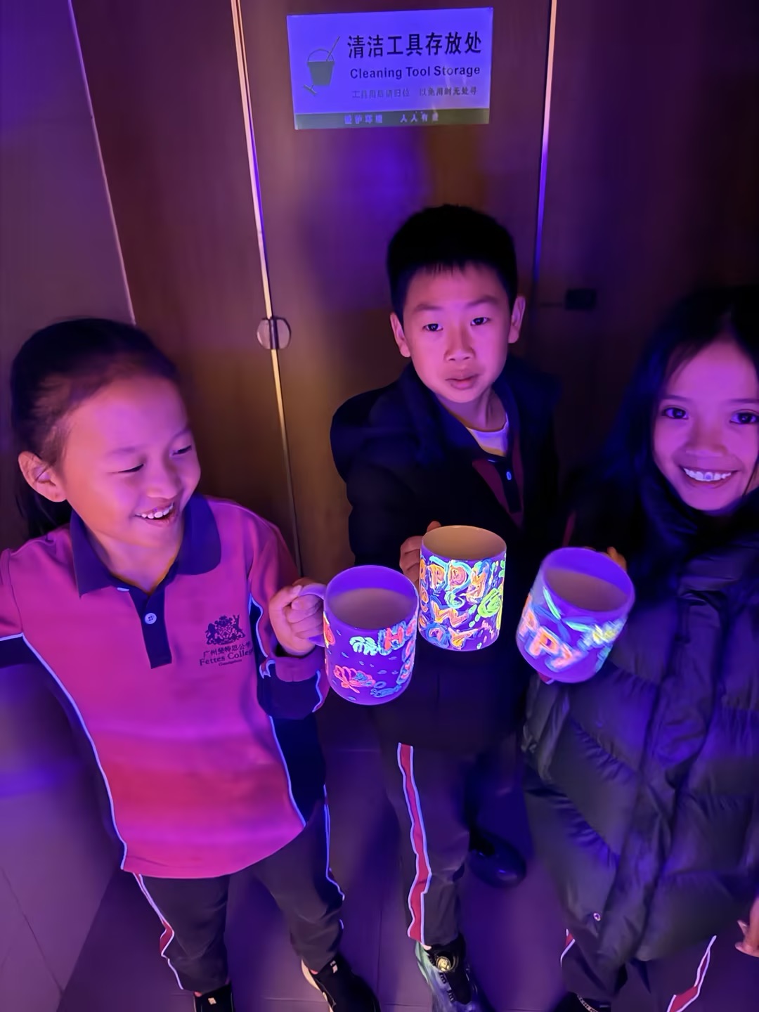 Our latest exploration took us into the realm of bioluminescence. The students were fascinated to learn about animals that produce their own light, such as fireflies and certain types of jellyfish. We also discus materials interact with UV light. To bring this knowledge to life, the children got creative with a special glowing paint! They painted mugs that light up under UV light, combining art with science in a delightful and engaging way. Watching their faces light up (no pun intended!) as their creations shone brightly was truly a memorable moment.